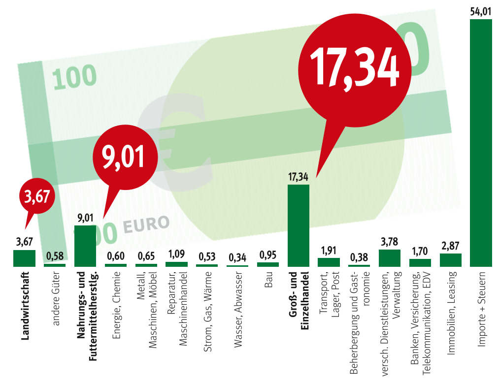 Zwei Studien des Wirtschaftsforschungsinstitutes (WIFO) zeigen auf, was den Bauern tatsächlich für den Verkauf ihrer Produkte bleibt und was sich ändern könnte, wenn mehr Menschen heimische Lebensmittel kaufen. Werden in Österreich beispielsweise um 100€ Lebensmittel eingekauft, liegt die Wertschöpfung für die Landwirtschaft bei gerade einmal 3,67€.